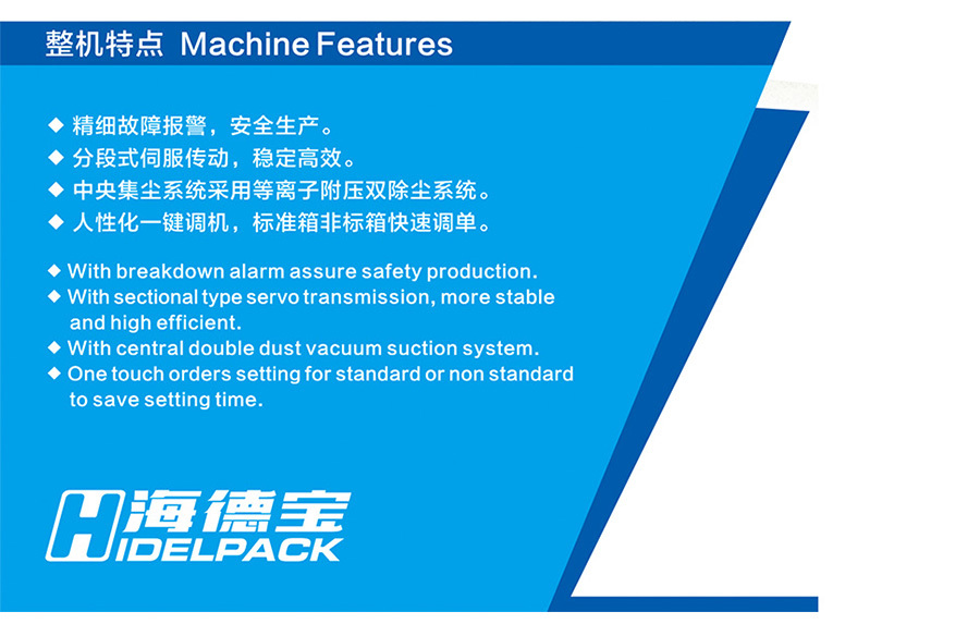 公司産品主要(yào)有(yǒu):全電(diàn)腦(nǎo)高(gāo)網線六+1,七+1、高(gāo)速印刷開(kāi)槽模切機(jī)、全自(zì)動高(gāo)速印刷開(kāi)槽¥模切機(jī)、自(zì)動半自(zì)動輪轉開(kāi)槽機(jī)、大(dà)滾筒印刷機(jī)、半自(zì)動粘箱機(jī)、開(kāi)槽切角機(jī)、分(fēnβ)紙(zhǐ)壓線機(jī)、高(gāo)速半自(zì)動釘箱機(jī)等全套紙(zhǐ)箱設備。